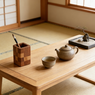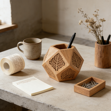 Leaf Cutout Geometric Wooden Pen Holder – Aesthetic Desk Decor
