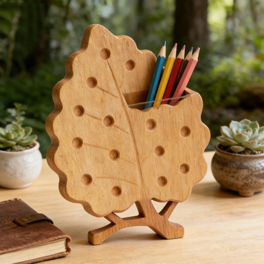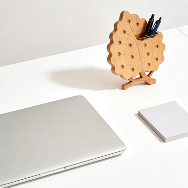 Leaf-Shaped Wooden Pen Holder – Cute Desk Organizer for Plant Lovers