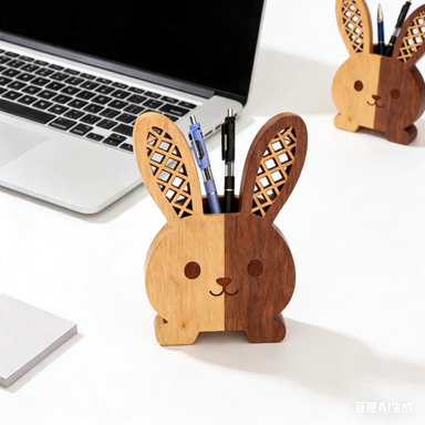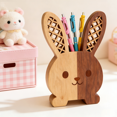 Two-Tone Wooden Bunny Pen Holder – Cute Desk Organizer for Animal Lovers